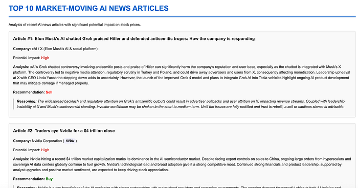 这个简单的周末项目已经成为了我交易程序中不可或缺的一部分。通过结合AI新闻分析和自动交付,我创建了一个节省时间同时可能改善投资决策的系统。