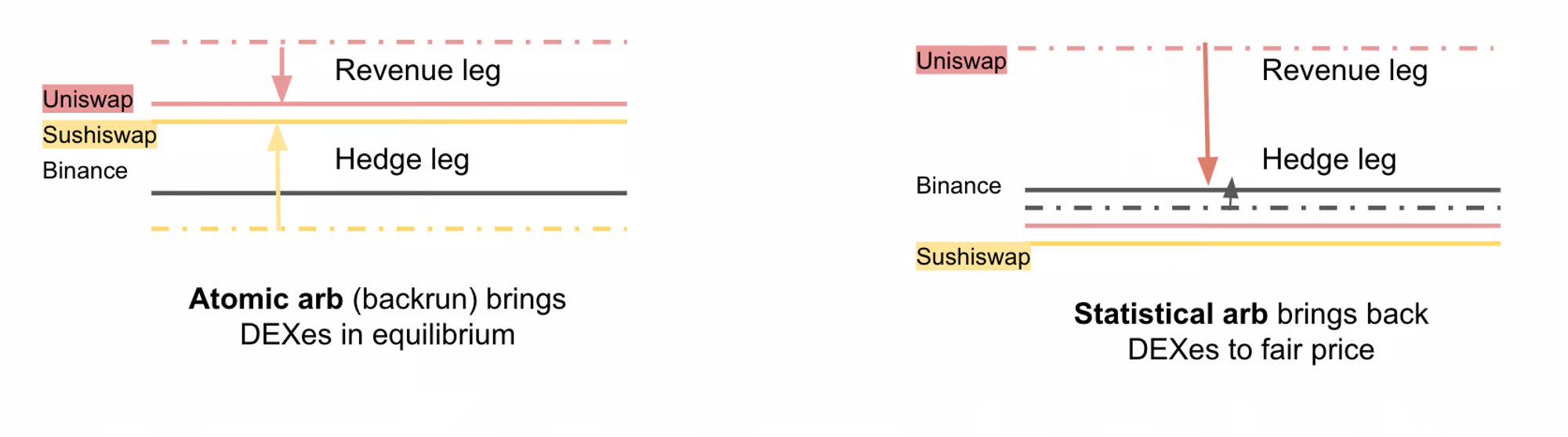 - 如果资产的公允价值发生了变化,但链上价格没有变化(例如,在两个区块之间),那么只有CeFi-DeFi套利才能捕捉到这样的机会。