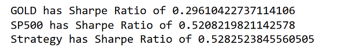 print(f'GOLD has Sharpe Ratio of {calculate_sharpe_ratio(df_backtest["gold_pct_change"], risk_free_rate=0.02, periods_per_year=12)}')