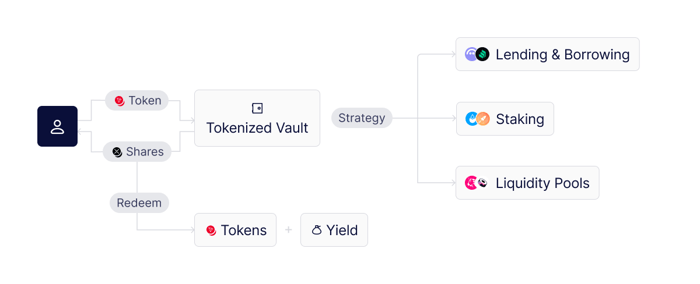 存入资产到金库的用户会收到份额——代表其对金库的按比例所有权的代币。这些份额以后可以赎回以获得初始存款加上任何已获得的回报。