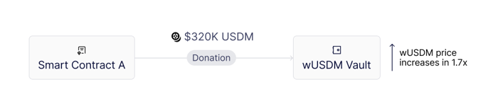 - 攻击者直接向wUSDM金库捐赠正好32万美元的USDM。