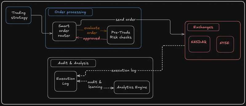 一旦做出交易决策,就不会盲目地将订单发送到交易所。它会通过智能订单路由器(SOR)。