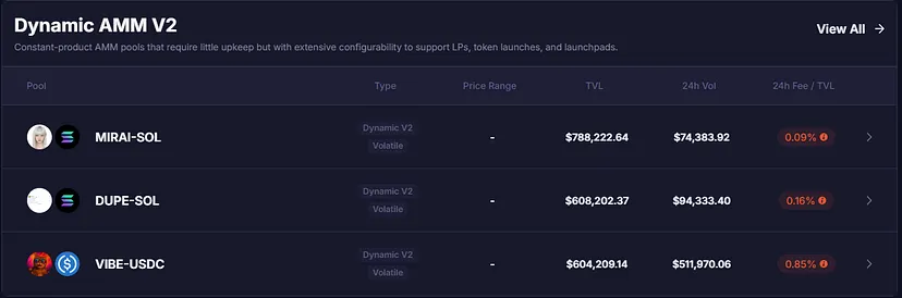 Meteora设计了不同类型的池子,为流动性提供者提供了更多赚取收益的方式——交易费用、借贷收入和灵活的流动性管理策略。