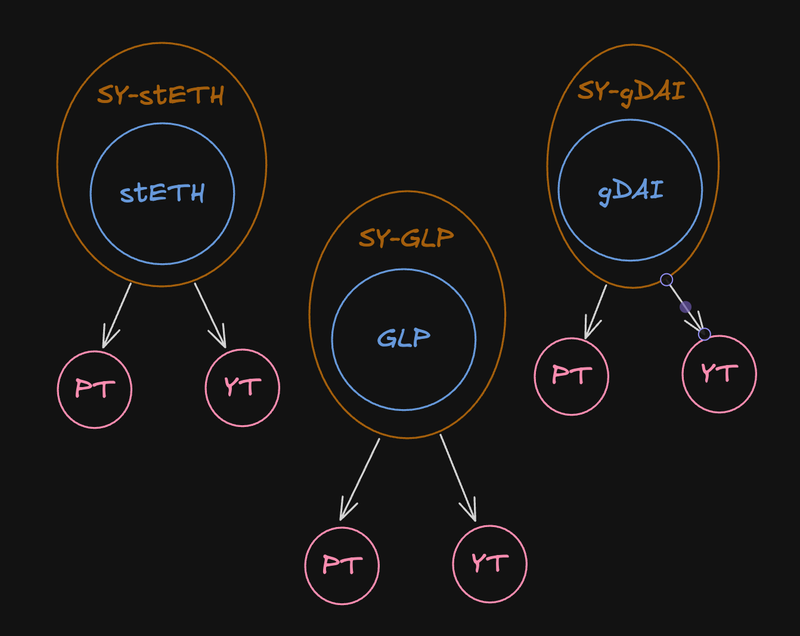 该协议为包装器引入了缩写SY(标准化收益代币)。例如,SY-stETH是stETH的包装器。