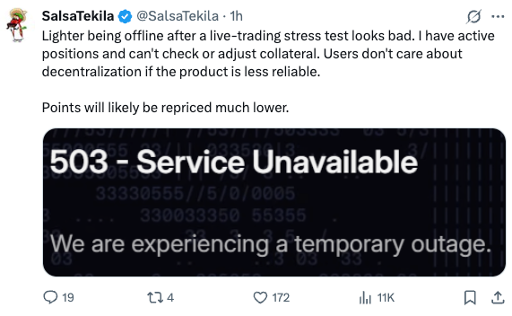 但通常情况下,这些问题会在几小时内得到解决。对于中心化交易所 (CEX) 来说,像 Lighter 那样的全面停摆是不可想象的。