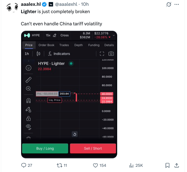 Hyperliquid 的竞争对手之一 Lighter 在市场波动后遇到了问题,导致平台下线。