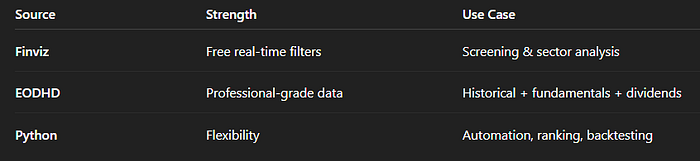 你不需要再爬取、猜测或依赖第三方门户了。有了 Python + finvizfinance + EODHD,你可以拥有你的数据、控制你的过滤器,并验证你的优势——全部在一个框架中。
