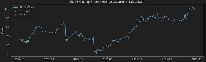 对于雅诗兰黛公司,我们可以在2024年底和2025年初看到一些购买行为。这些交易不像礼来公司在某个底部低点那样…但所有交易都成功了,尽管后来经历了特朗普贸易战期间的回撤…但股票弥补了这些损失,目前的回报约为40%。